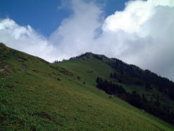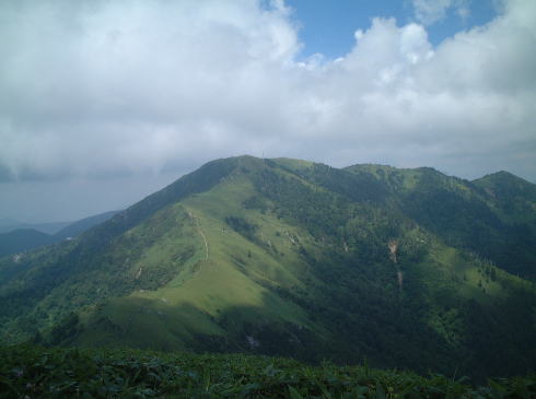 ( 行き剣山中腹から次郎山方面を撮影 / 剣山から次郎山までの中間地点 笹が光に照られて美しい)