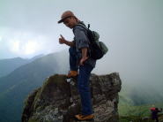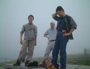 山頂で記念撮影(下の左下)後、風が吹き付けるから吸い込まれるような感じに変化し始めたので